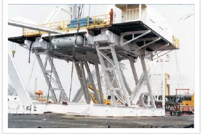井架和底座用來(lái)支撐和安裝各鉆井設(shè)備和工具、提供鉆井操作場(chǎng)所。井架用來(lái)安裝天車、懸掛游車、大鉤、水龍頭和鉆具,承受鉆井工作載荷,排放立根;底座用來(lái)安裝動(dòng)力機(jī)組、絞車、轉(zhuǎn)盤、支撐井架,借助轉(zhuǎn)盤懸持鉆具,提供轉(zhuǎn)盤和地面之間的高度空間,以安裝必要的防噴器和便于泥漿循環(huán)。
